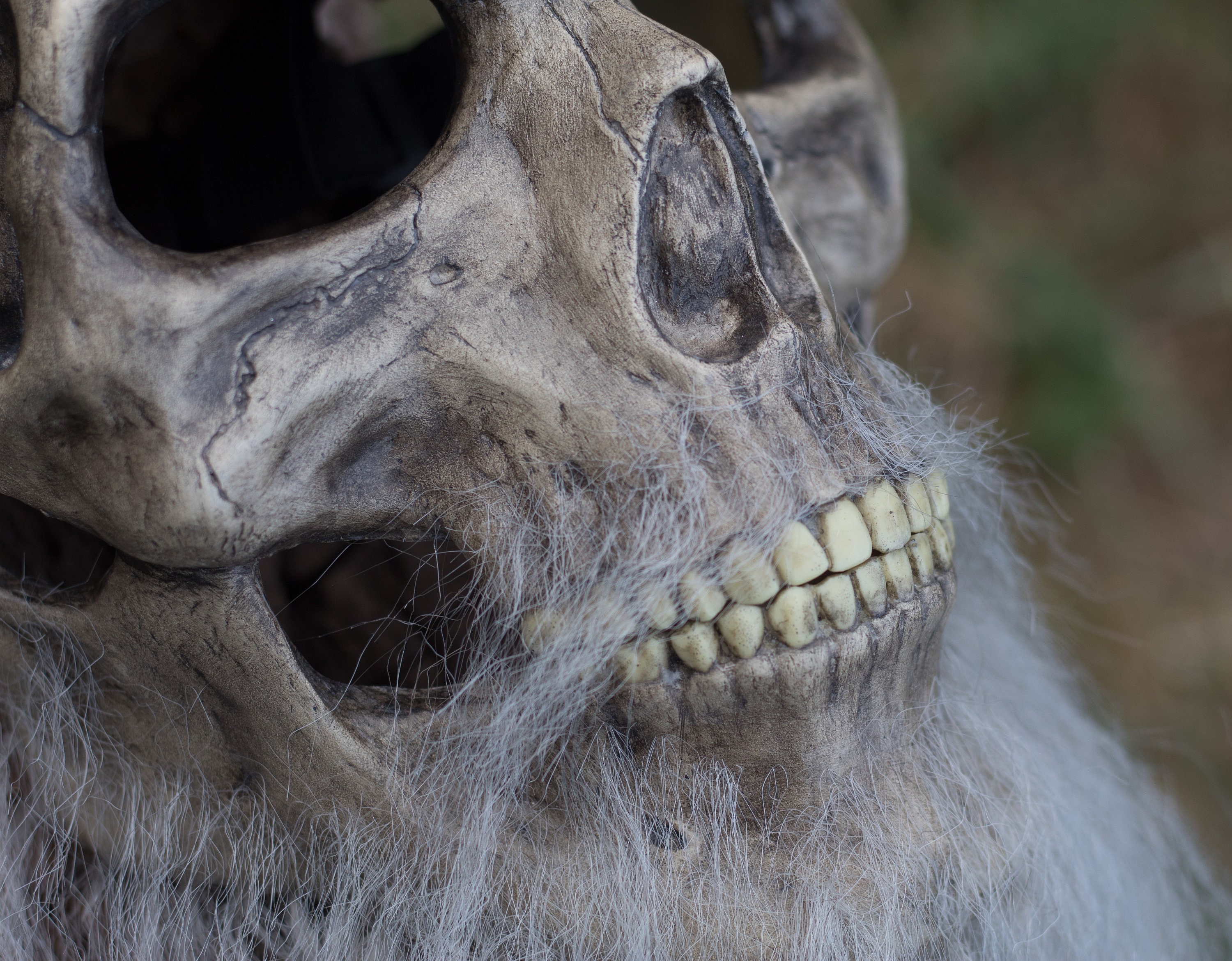 Human Skull Mask Full Face With Realistic Teeth Movable Jaw Bone Shape And Gray Beard